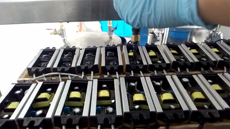 電子灌封膠有雙組份,也有單組份,本案例客戶深圳電子科技有限公司使用我司雙組份電子灌封膠進(jìn)行電源灌模密封。采用機(jī)器進(jìn)行真空環(huán)境下操作配比,將配比后的電子灌封膠經(jīng)過管道輸出就可以用于電源灌封使用。下面是客戶生產(chǎn)視頻拍攝由于手機(jī)拍攝像素問題導(dǎo)致不清晰,請諒解。
